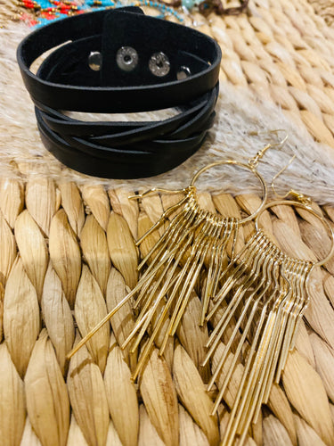 Leather brown stacked earrings
