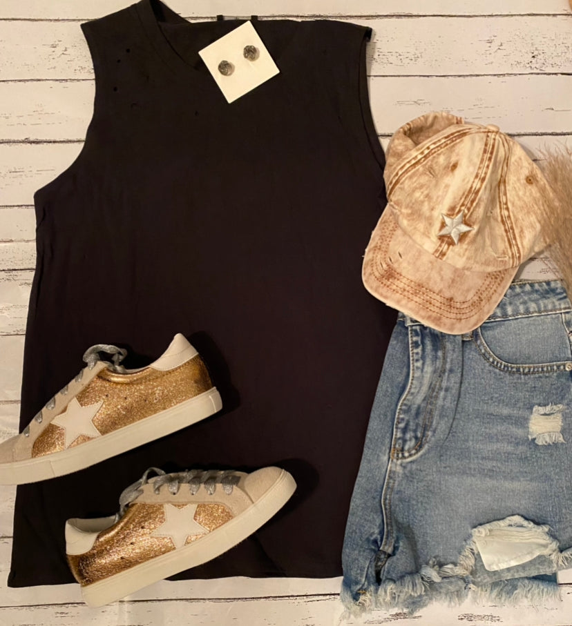 Star gaze distressed hat