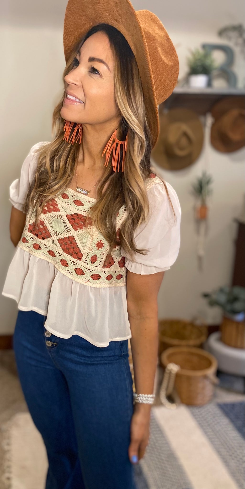 • Load image into Gallery viewer, Talley crochet peplum top / blouse