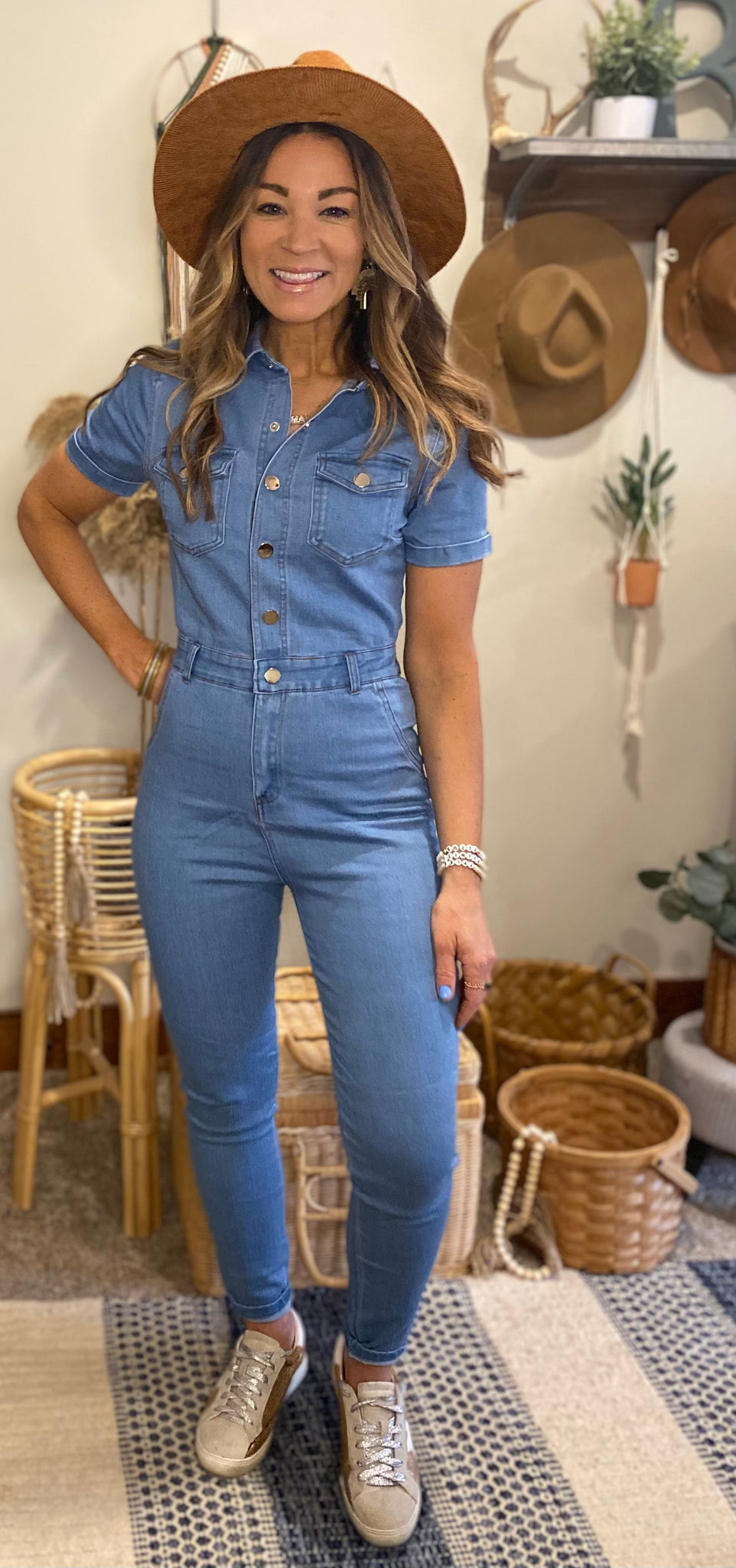 • Load image into Gallery viewer, Taylor denim jumpsuit
